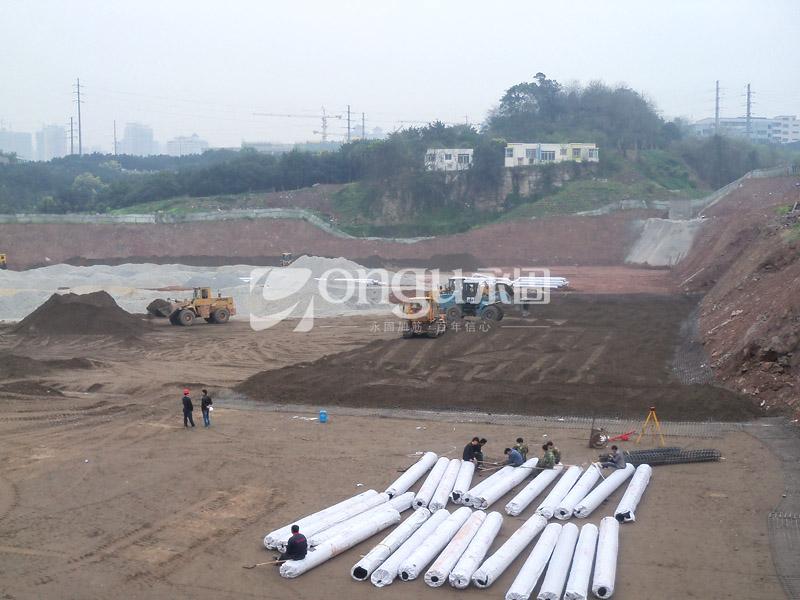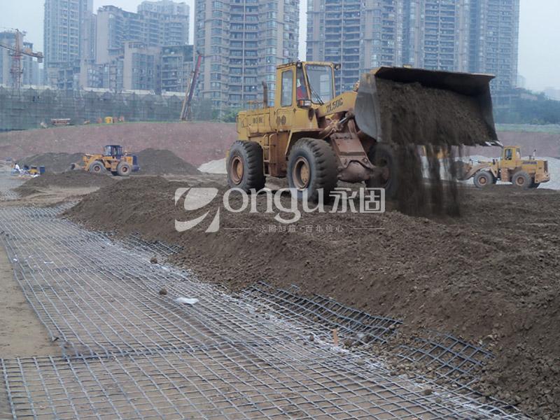 项目位于重庆南岸经开区回龙片区I13-8/03地块,建筑总用地面积29987m²,总建筑面积72776.90m²。场地西南侧紧邻南滨路。根据原始地形图及钻探揭露情况,场地原始地形主要为长江河漫滩,南滨路修建后,路堤内侧(场地内)进行了大范围的回填。场区地貌属长江侵蚀堆积(河漫滩)地貌。项目由9栋6层花园洋房、2栋5+1层带底层商业的花园洋房组成,地下车库-1F,工程重要性等级为二级。永固为本项目提供了加筋材料和现场技术服务。