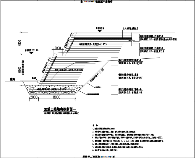 边坡外侧均为已建市政道路,无放坡及开挖条件,作为永久性边坡,必须采取支护措施,设计采用加筋土边坡进行支护。