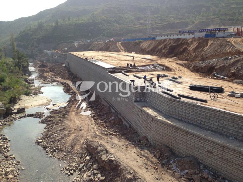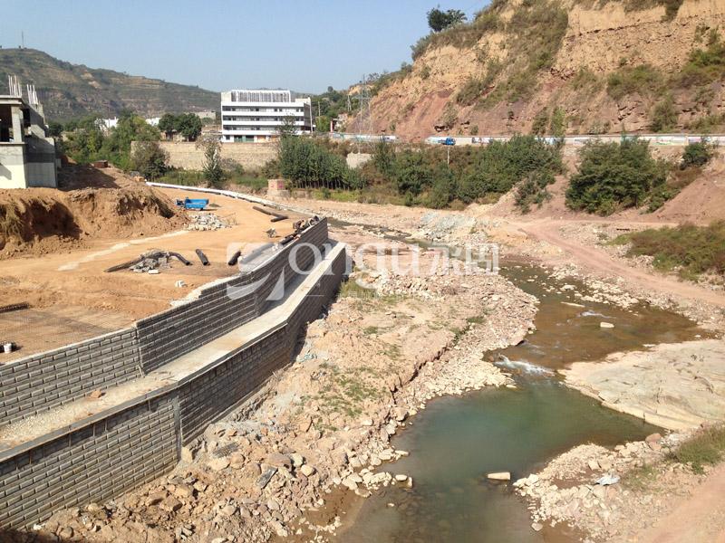 陕西陕煤韩城矿业有限公司王峰矿井为年产300万吨的特大型矿井及选煤厂。矿井工业场地分为主井场地和副井场地,本次设计副井场地沿河段填方挡土墙位于陕西省韩城市王峰乡卓立村以南、凿开河南侧的阶地上,是集防洪、护岸、厂区运煤通道为一体的综合建设工程。场地填方高度10m~20m,总长约850m。