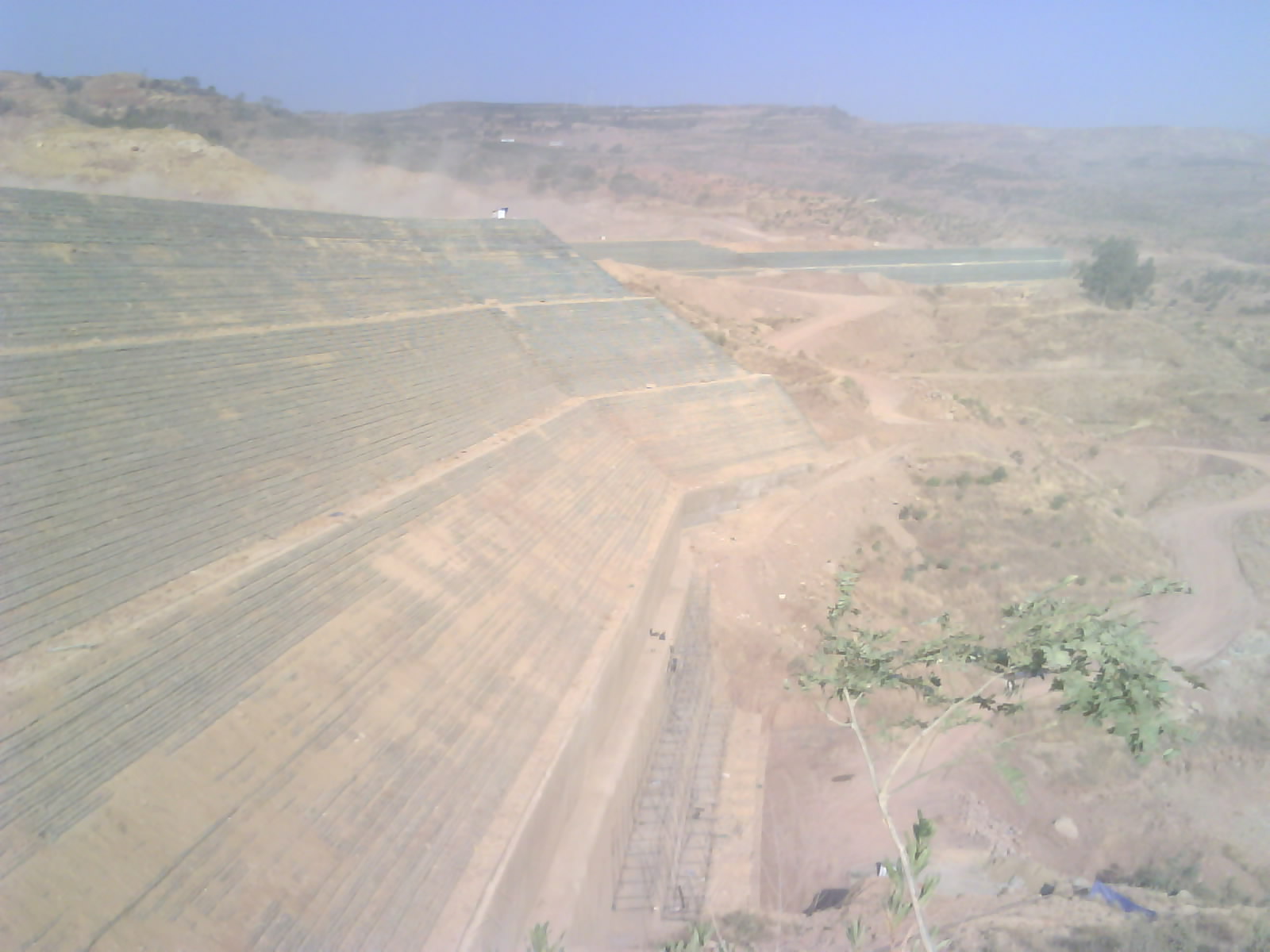 设计采用抗滑桩+20米分阶加筋土挡墙+36米加筋边坡进行支护,填方治理总高度56米,为国内少见的超高加筋土结构项目。
