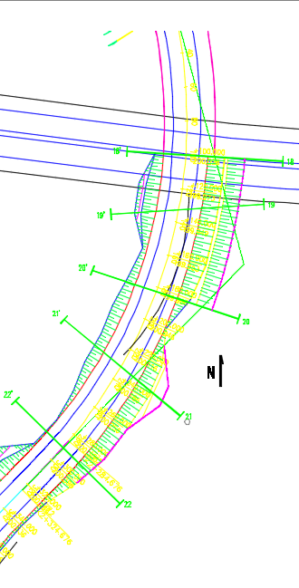 场地地形坡角变化较大,沟湾处一般<5°,局部丘堡斜坡及施工区临时边坡处稍陡,达20~35°。其中K2+100~K2+320段因道路左侧为箭滩河河沟,填方高度4~20米,为保证河道行洪需要不能自然放坡,须在道路左侧设置边坡支护结构以满足道路稳定需要。箭滩河50年一遇洪水水位196.0米,边坡须考虑洪水冲刷影响。