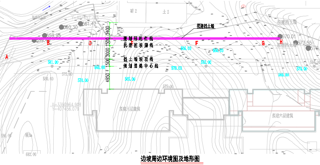 。地面标高在566.7-590.0米左右。本场地为Ⅱ类建筑场地类别,设计地震分组为第一组,设计地震加速度值为0.05g,对应的设计特征周期为0.35s。一般抗震地段。挡土墙工程抗震按本地区抗震设防烈度6度考虑地震作用和设防。