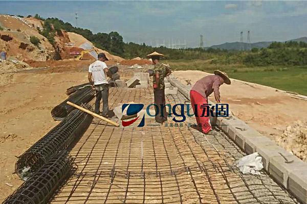 项目设计时,永固配合设计院完成加筋土方案设计工作。施工实施时,受施工单位的委托,永固承担了对本项目加筋材料供应服和现场技术服务工作。