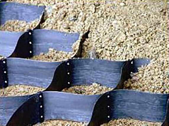 3、较高的侧向限制和防滑,防变形、有效的增强路基的承载能力和分散荷载。